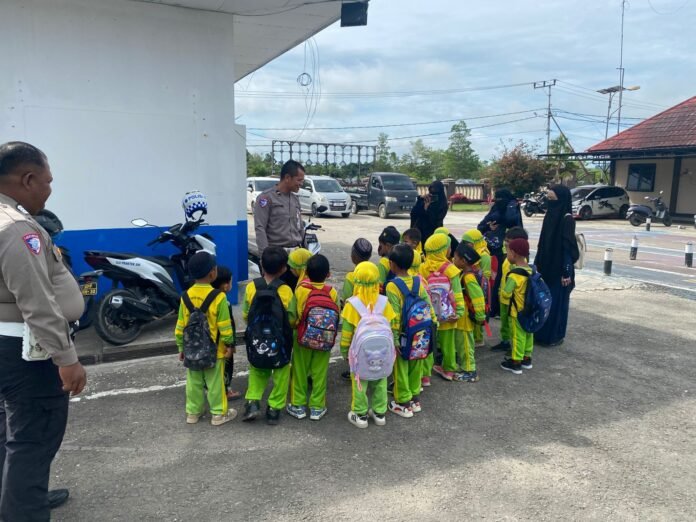 TANJUNG SELOR, Polda Kaltara, Polresta Bulungan – Personel Satuan Lalu Lintas (Sat Lantas) Polresta Bulungan melaksanakan kegiatan sosialisasi keselamatan berlalu lintas kepada anak-anak TK Raudhatul Athfal Imam Ibnu Katsir Tanjung Selor. Kegiatan edukatif ini berlangsung di Mako Polresta Bulungan, Kamis (18/9/2025).