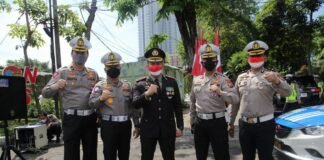 Kasat Lantas Polrestabes Surabaya Turun Ke Jalan Bagikan Bendera Merah Putih...