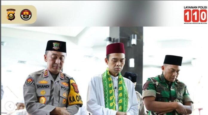 Momen Khusyuk Kapolda Sumsel & UAS di Masjid Assa’adah Suasana khusyuk menyelimuti Masjid Assa’adah Mapolda Sumsel pada Jumat (13/3) hari ini. Kapolda Sumsel Irjen Pol Sandi Nugroho bersama jajaran personel melaksanakan Shalat Jumat dengan khatib istimewa, Ustaz Abdul Somad (UAS). Dalam khutbahnya, UAS memberikan pesan spiritual yang mendalam bagi seluruh keluarga besar Polri. Beliau menegaskan […]