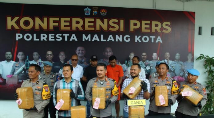 KOTA MALANG – Satuan Reserse Narkoba (Satresnarkoba) Polresta Malang Kota berhasil menggagalkan peredaran ganja seberat 42 kilogram dan menangkap seorang kurir berinisial MS (27) asal Gedangan Kabupaten Sidoarjo.