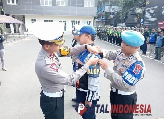 Kasatlantas Polresta Malang Kota Kompol. Aristianto Budi Sutrisno saat menyematkan pita pada personel yang akan diterjunkan dalam Operasi Keselamatan Semeru 2024.