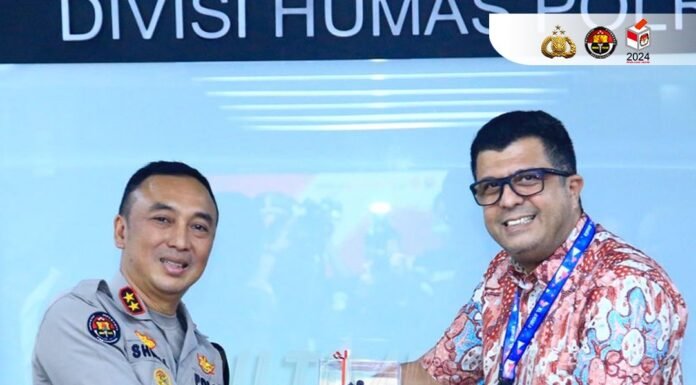 Kadiv Humas Polri Irjen Pol. Dr. Sandi Nugroho, S.I.K., S.H., M.Hum., menyambut dengan hangat kunjungan audiensi Ketua Umum Ikatan Wartawan Online (IWO) Yudhistira M.Ikom beserta jajaran di Gedung Divisi...