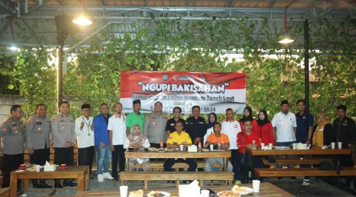 Tanah Laut- Polres Tanah Laut Polda Kalsel mengadakan kegiatan Ngupi Bakisahan silaturahmi bersama Kapolres Tanah Laut dalam rangka Pemilu Damai Tahun 2024, bertempat di Fellas...