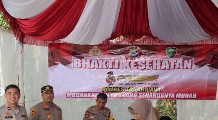 Seperti slogannya, "Pengabdian Kami Untuk Masyarakat" Polres Tanah Laut wujudkan bentuk Pengabdiannya terhadap masyarakat. Potret Pelaksanaan bakti kesehatan dengan memberikan pelayanan kesehatan gratis kepada masyarakat di Kabupaten Tanah Laut.