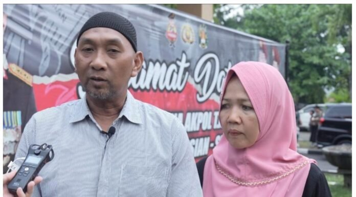 Ade Chandra dan Erni Wesih langsung menangis saat nama anaknya, Nyimas Fitria Amelia, tak disebut dalam Sidang Akhir Rekrutmen Akademi Kepolisian (Akpol) 2023. Mereka menangis bahagia.