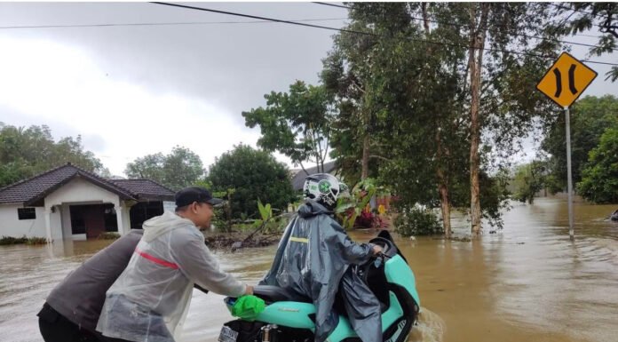Aksi Heroik Personel Polsek Takisung Bantu Dorong Motor Warga Terperangkap Banjir