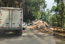 Antrian kendaraan terlibat kemacetan di Jalan Poros Maros-Bone tepatnya di Tompo Ladang, Kecamatan Mallawa, Kabupaten Maros, Sulawesi Selatan, Kamis (18/4/2024)
