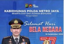 Kapolda Metro Jaya: Bela Negara Tanggung Jawab Bersama untuk Indonesia Maju Foto: Kapolda Metro Jaya Irjen Pol Asep Edi Suheri Kepolisian Daerah Metro Jaya beserta staf dan seluruh jajaran menyampaikan ucapan Selamat Hari Bela Negara yang diperingati setiap 19 Desember. Peringatan ini menjadi momentum penting untuk meneguhkan kembali semangat bela negara sebagai fondasi menjaga […]